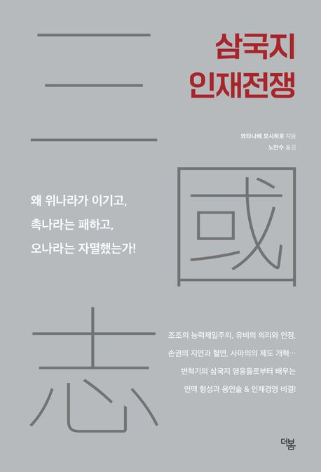중국 삼국시대는 변혁기이자 난세였다. 그랬기에 더욱 생존하기 위한 지혜의 대결, 인재 영입을 위한 영웅들의 치열한 경쟁이 있었다. 이 책은 다른 삼국지 관련서와는 다르게, 당시의 인사제도나 인맥 형성, 인재활용을 깊이 있게 탐구하면서 위·촉·오·진 각국의 인재 등용의 특징을 철저히 분석한다. 일본 최고의 삼국지 전문가의 대표작이기에 학술적으로도 깊이가 있다. 뿐만 아니라, 일반 독자 특히 ‘삼국지 덕후’에게는 새로운 깨우침을 주는 재미있는 ‘삼국지 대중역사서’, ‘삼국지 경영교양서’이다.